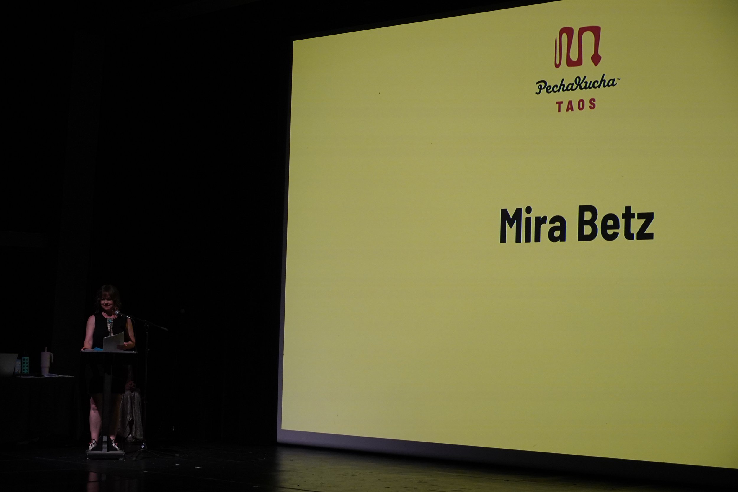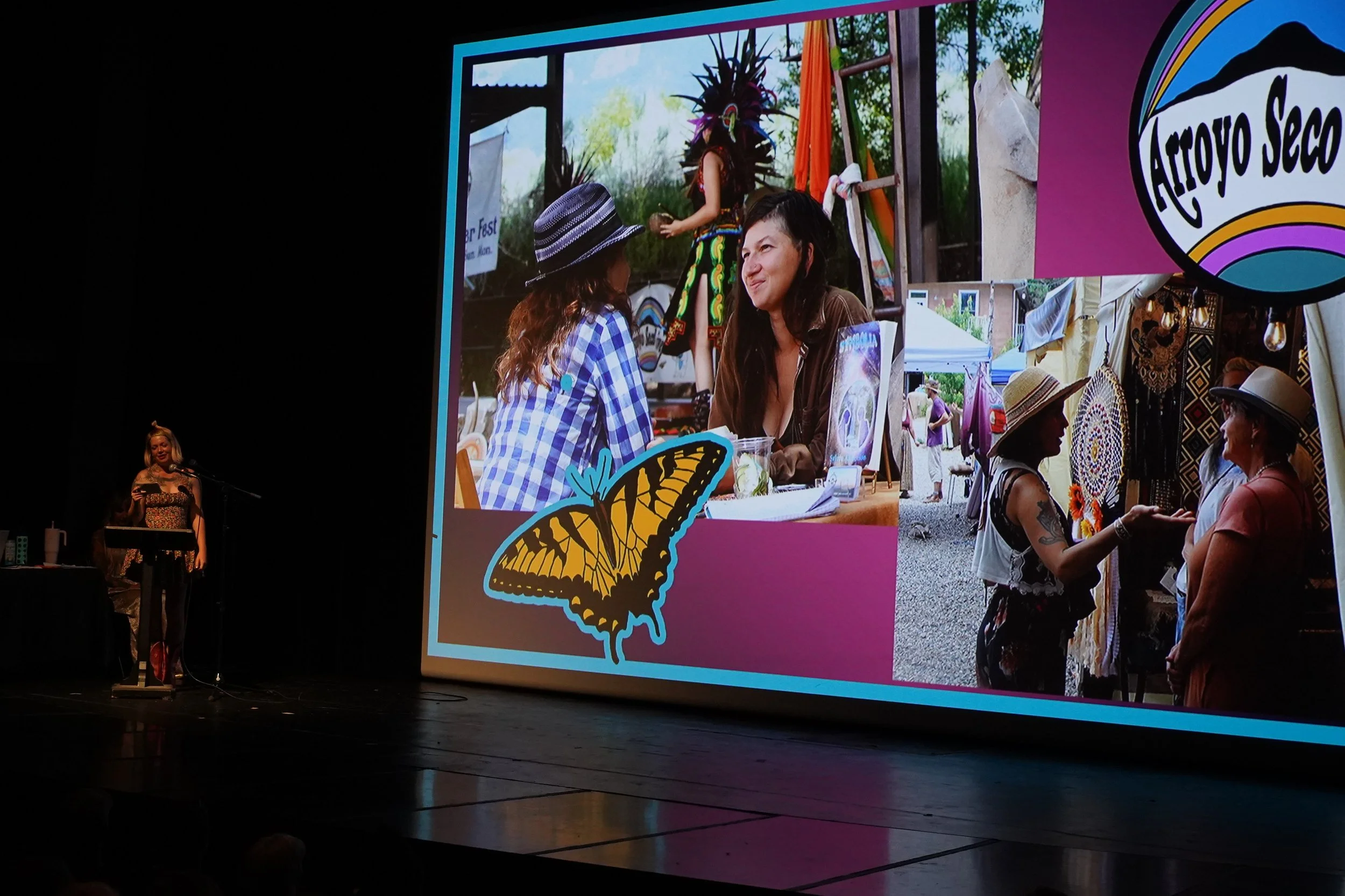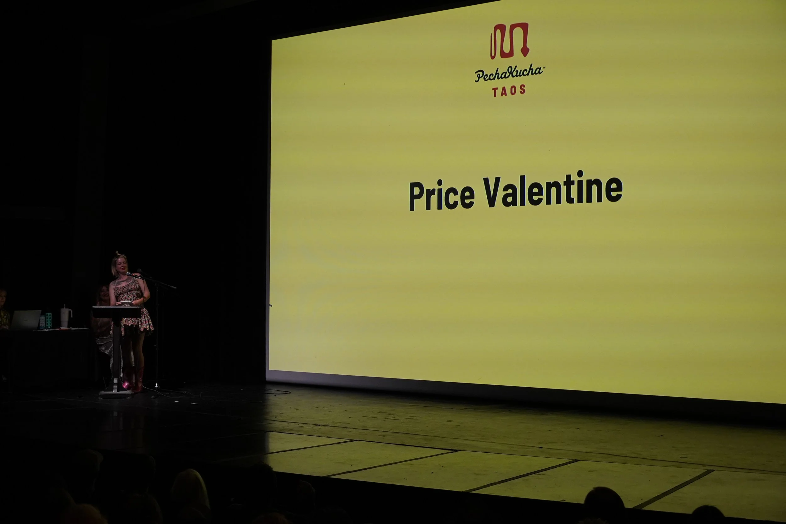 On Wednesday September 10, 2025, PechaKucha Taos made an incredible comeback after a four year pause at The Taos Center for the Arts. Co-heads Jay Vosper and Jessica Thomas, two Taos locals, set out to revive this global storytelling event with a couple of new twists including organizing a special musical guest and providing food as well as dessert from local businesses. Garry Blackchild brought the house down with country folk live music before the presentations and at intermission, Aceq Restaurant cooked up delicious tacos before the show, and A Salty Little Sweet Shop left zero cookie crumbs during intermission. Every presenter spoke from the heart and got a standing ovation including Price Valentine, David Vargo, Summer Duran, Lyle Wright, Julie Cloutman, Mira Betz, Nadine Lollino, Liz Van Voorhis, and Elija Safford. Thank you to all of our presenters and partners for making a memorable night happen. Thank you to Chris Thomas for the beautiful graphics. And a big thank you to Arroyo Seco Live, our generous sponsor for the event. Check out the live presentations on YouTube @pechakuchataos and save the date for the winter event on Wednesday 12/10 at the TCA.