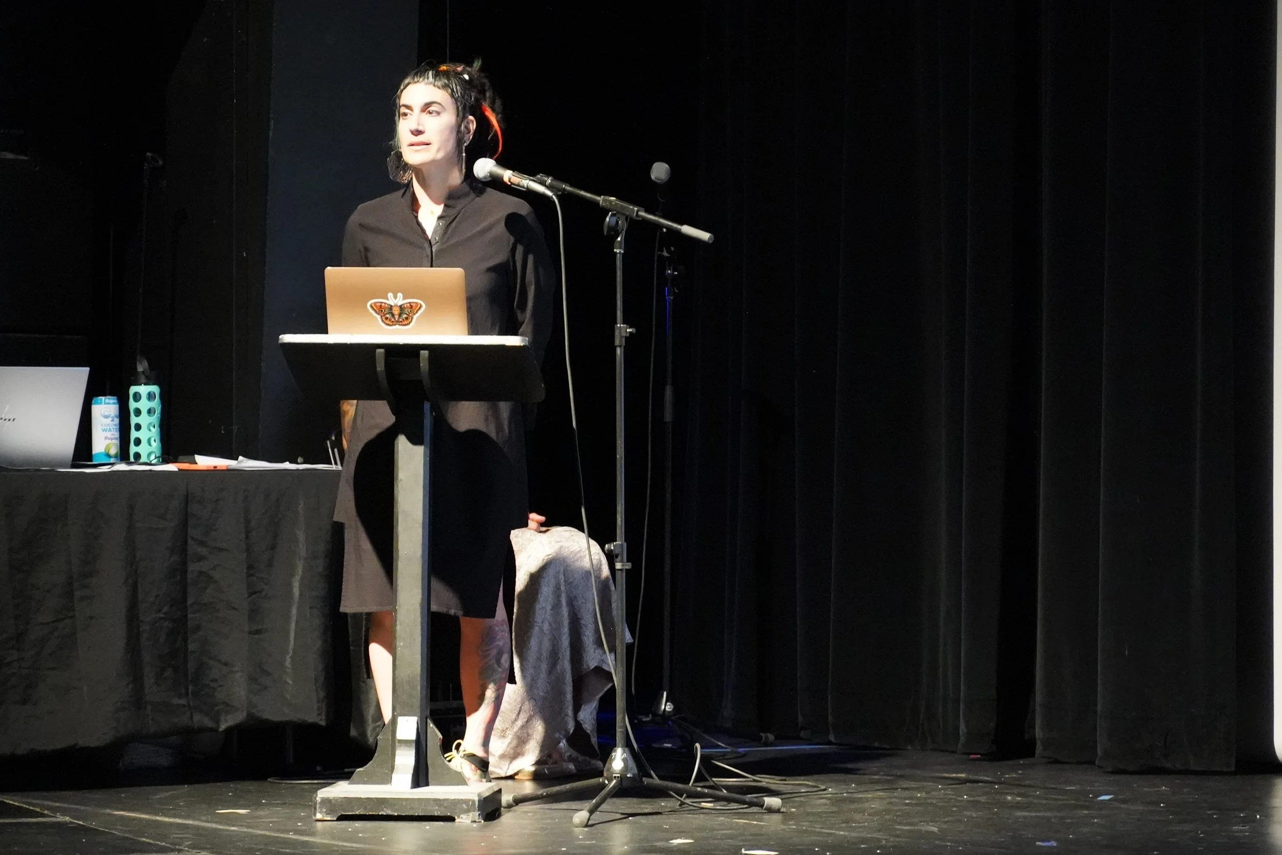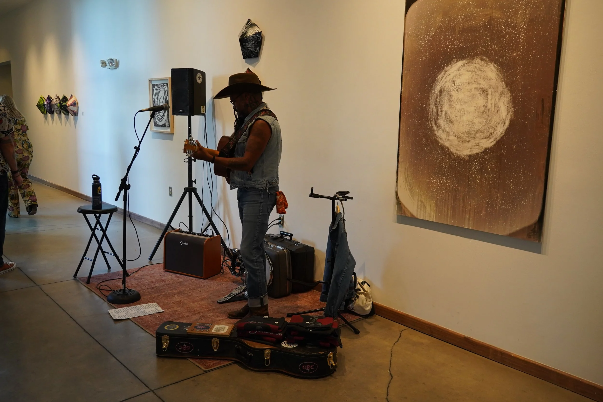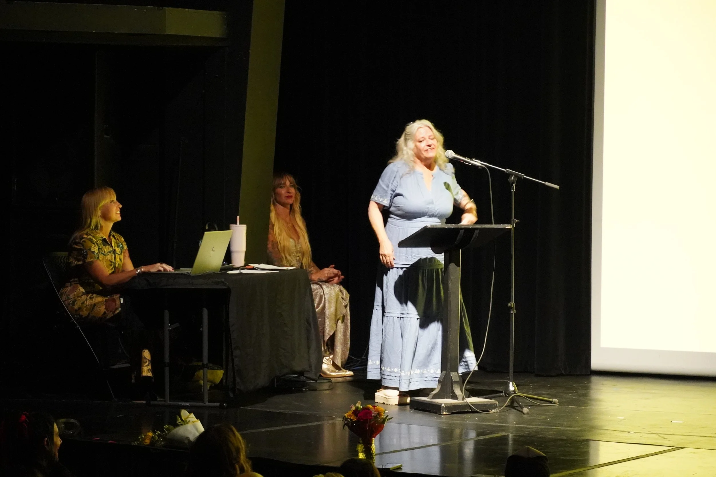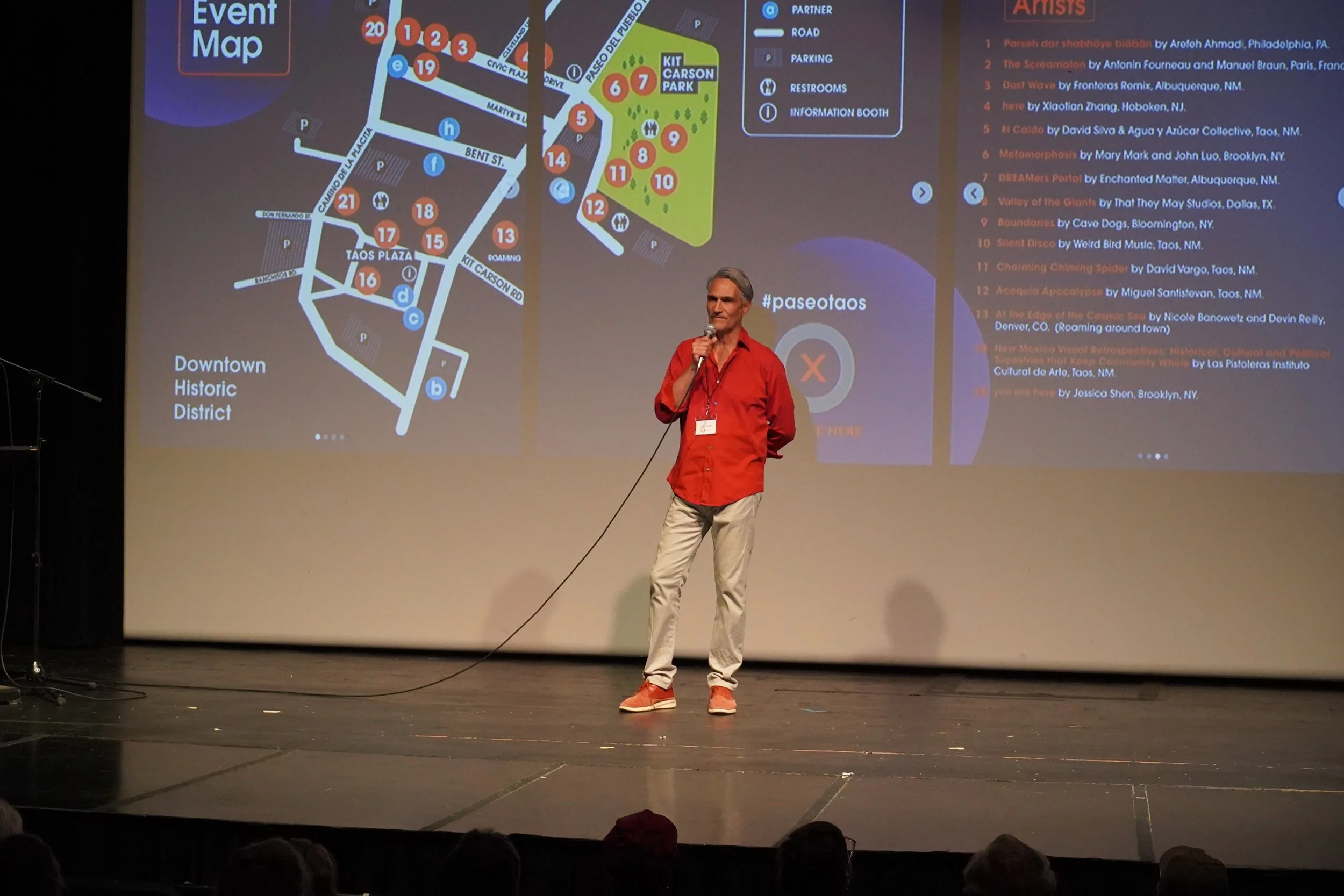 On Wednesday September 10, 2025, PechaKucha Taos made an incredible comeback after a four year pause at The Taos Center for the Arts. Co-heads Jay Vosper and Jessica Thomas, two Taos locals, set out to revive this global storytelling event with a couple of new twists including organizing a special musical guest and providing food as well as dessert from local businesses. Garry Blackchild brought the house down with country folk live music before the presentations and at intermission, Aceq Restaurant cooked up delicious tacos before the show, and A Salty Little Sweet Shop left zero cookie crumbs during intermission. Every presenter spoke from the heart and got a standing ovation including Price Valentine, David Vargo, Summer Duran, Lyle Wright, Julie Cloutman, Mira Betz, Nadine Lollino, Liz Van Voorhis, and Elija Safford. Thank you to all of our presenters and partners for making a memorable night happen. Thank you to Chris Thomas for the beautiful graphics. And a big thank you to Arroyo Seco Live, our generous sponsor for the event. Check out the live presentations on YouTube @pechakuchataos and save the date for the winter event on Wednesday 12/10 at the TCA.